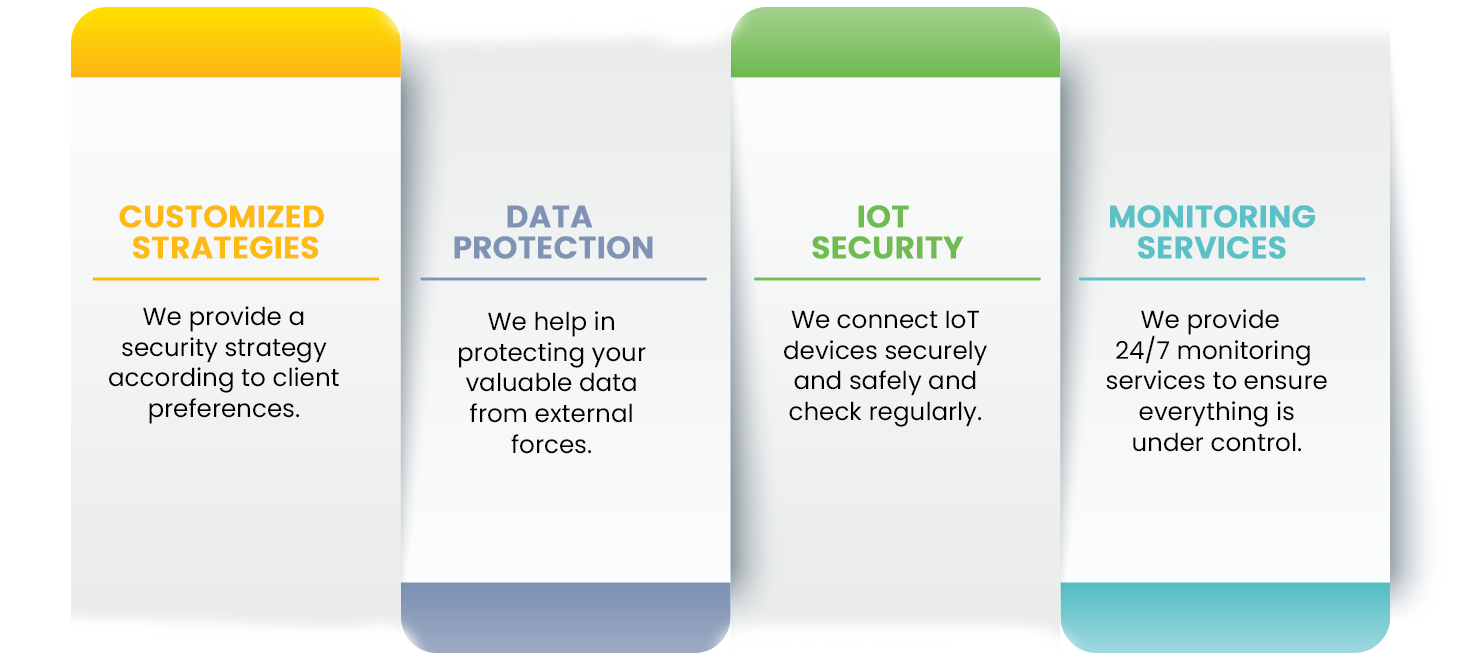 With our portfolio of comprehensive IT security services in networks, we use industry-leading initiatives to develop a complete security strategy that includes network fragmentation, program implementation, testing, 24/7 monitoring, and risk management to ensure the company does not face any threatening events.